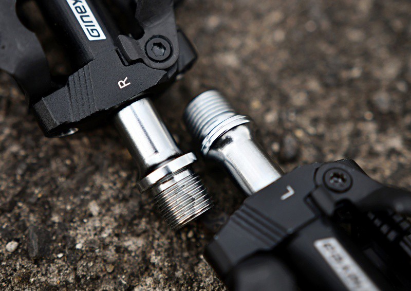 細心的小伙伴們其實已經發現了,L鎖踏的軸心處有經過特殊處理多了一圈凹槽,即便是鎖踏本體L字樣漆磨損后,也能輕易分辨左右。(左右不相同的軸心標記)