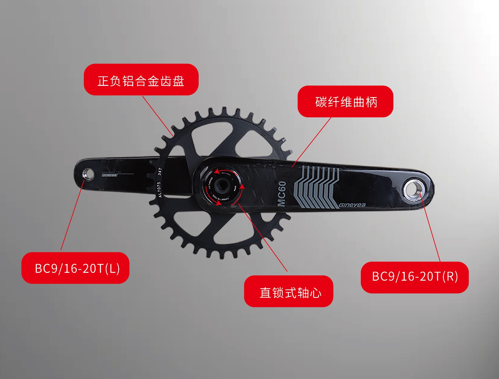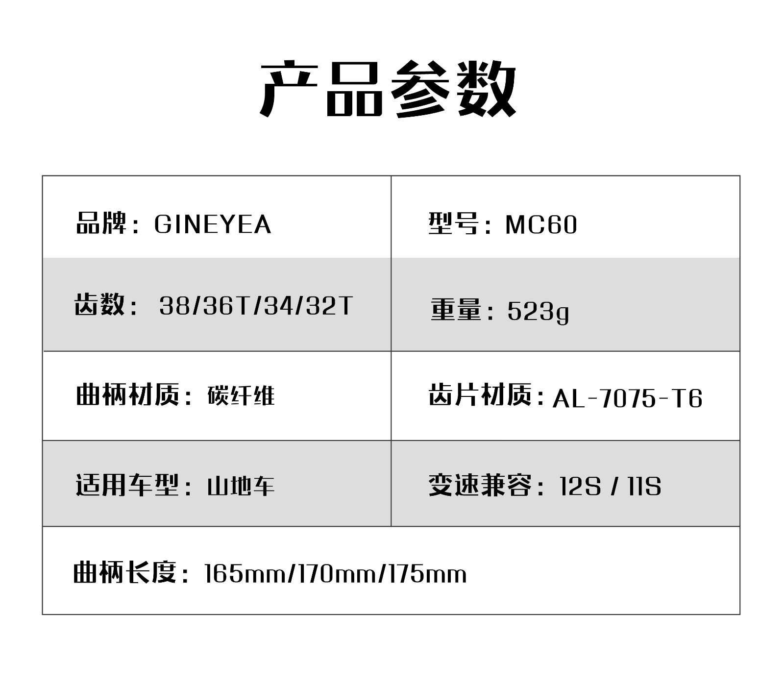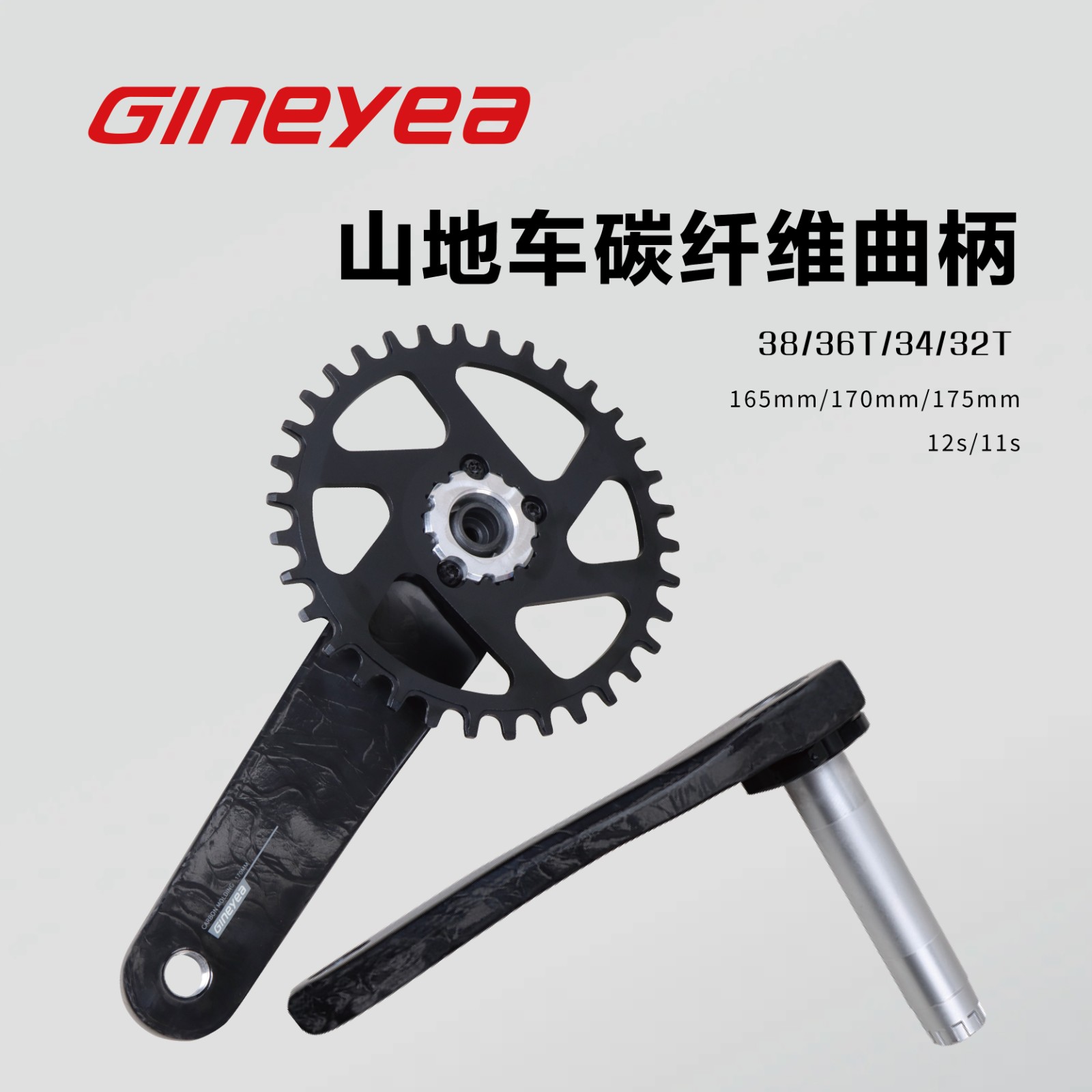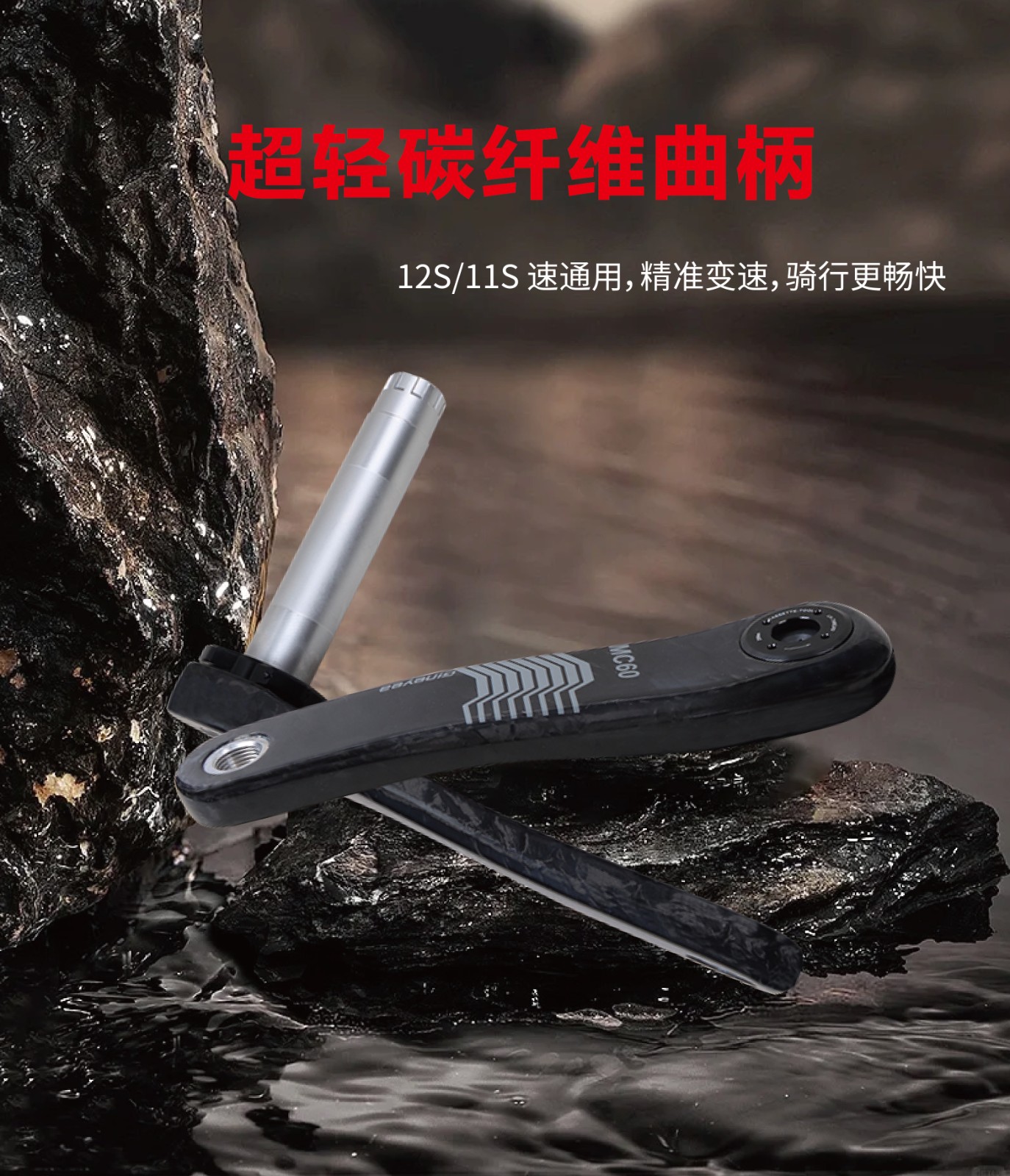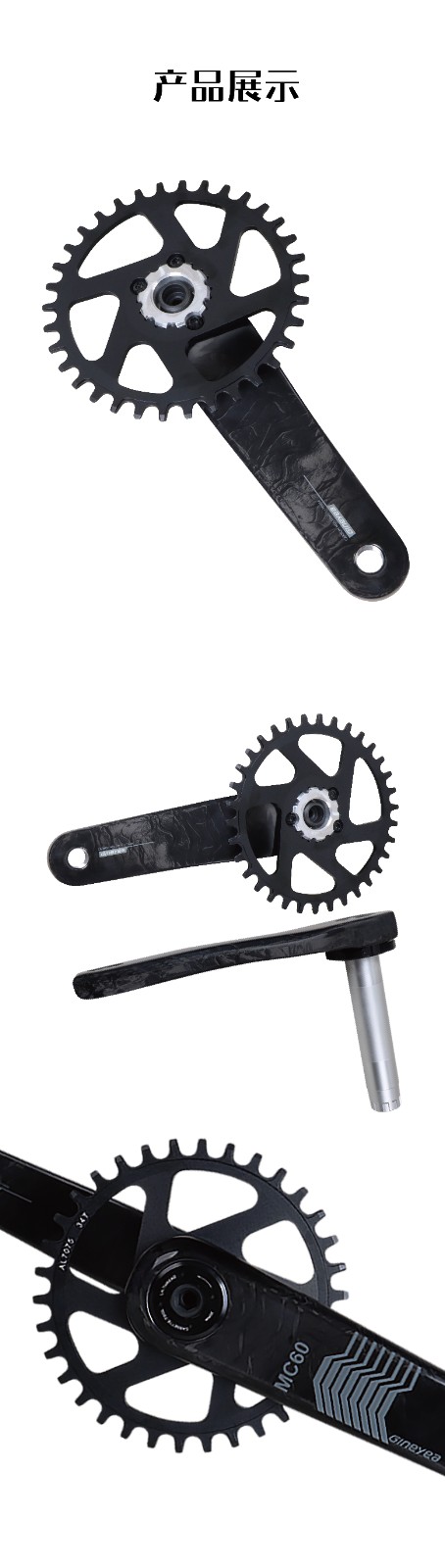 景曄MC60炭纖曲柄山地自行車170mm 牙盤曲柄組件直裝自行車配件